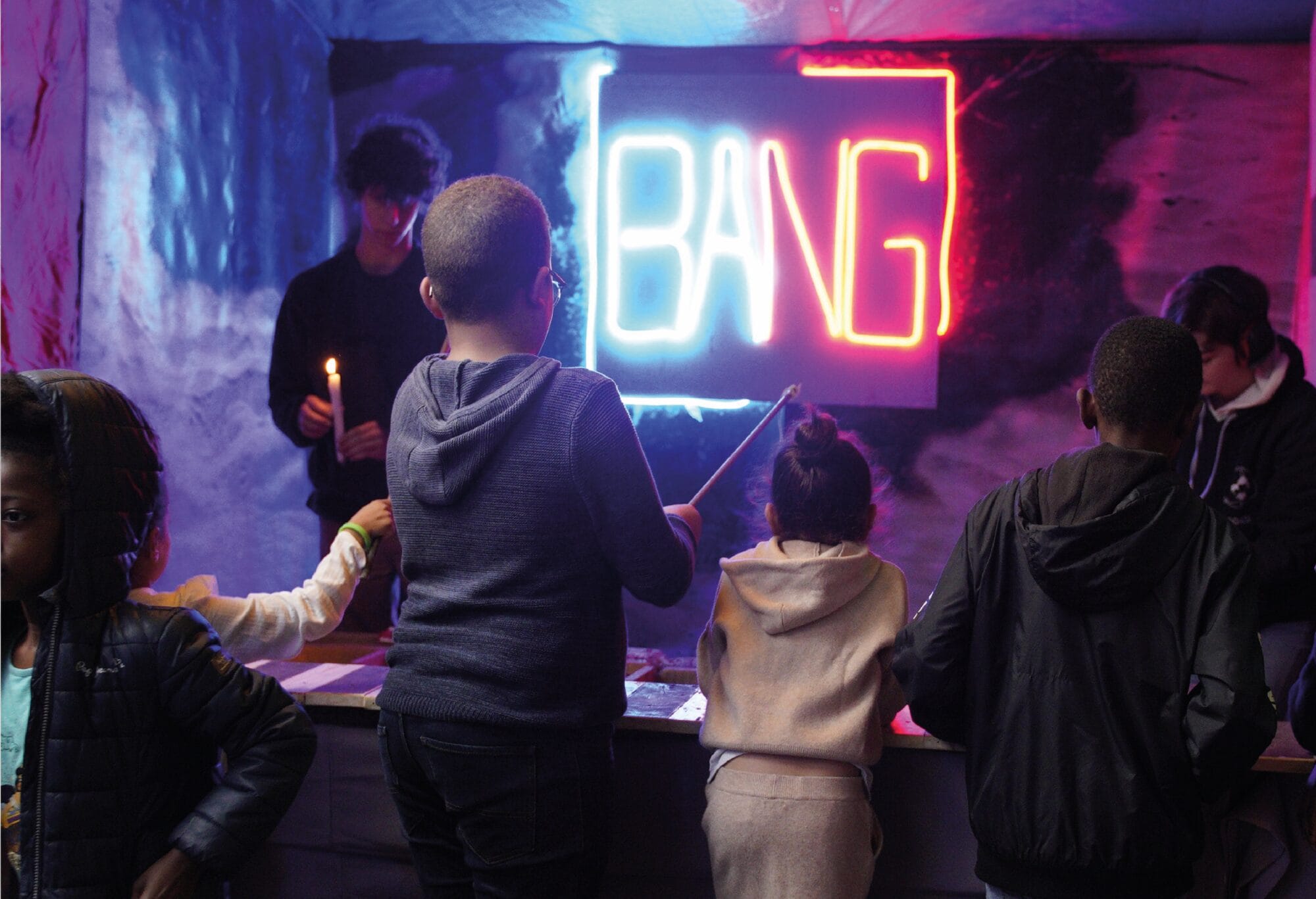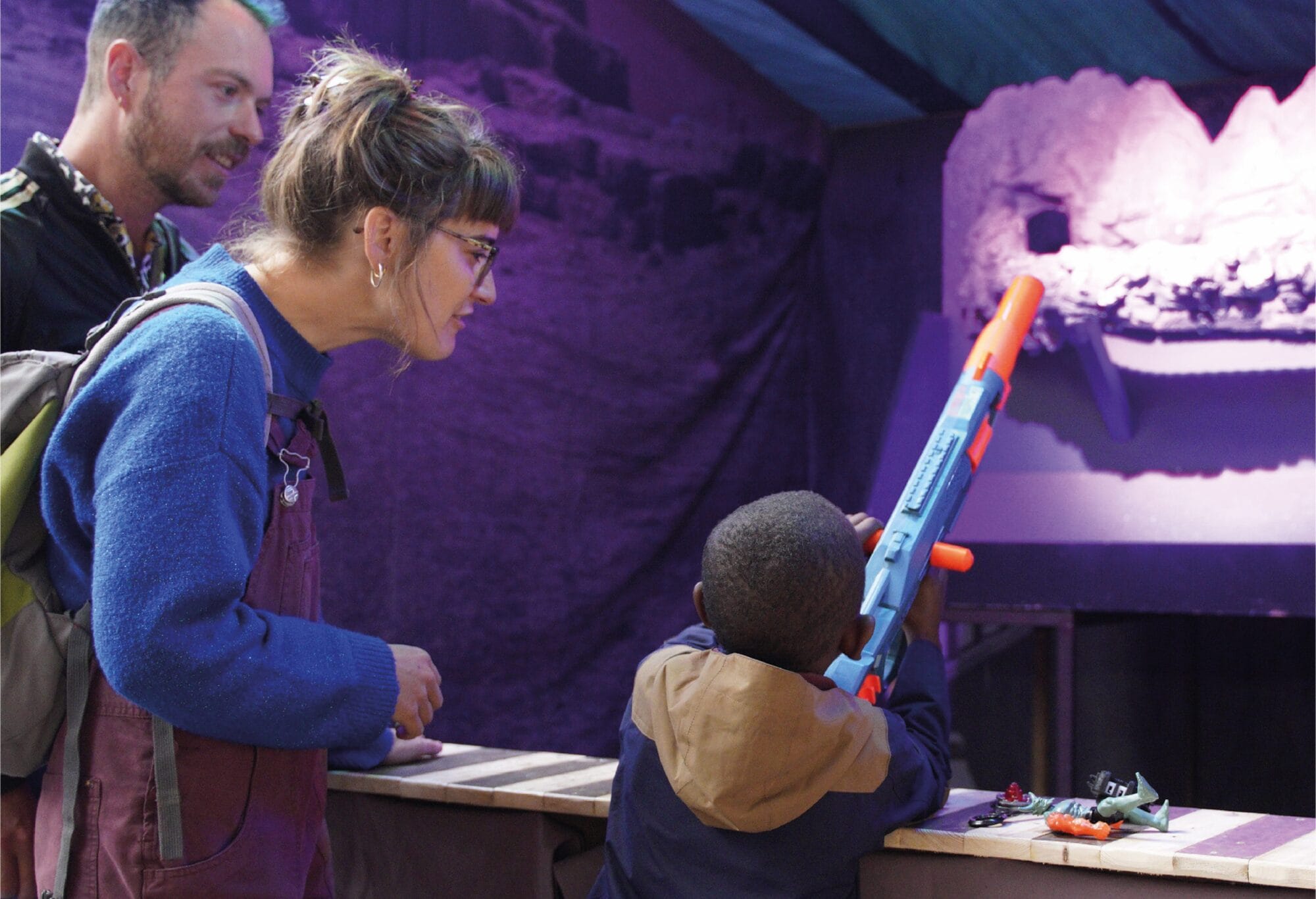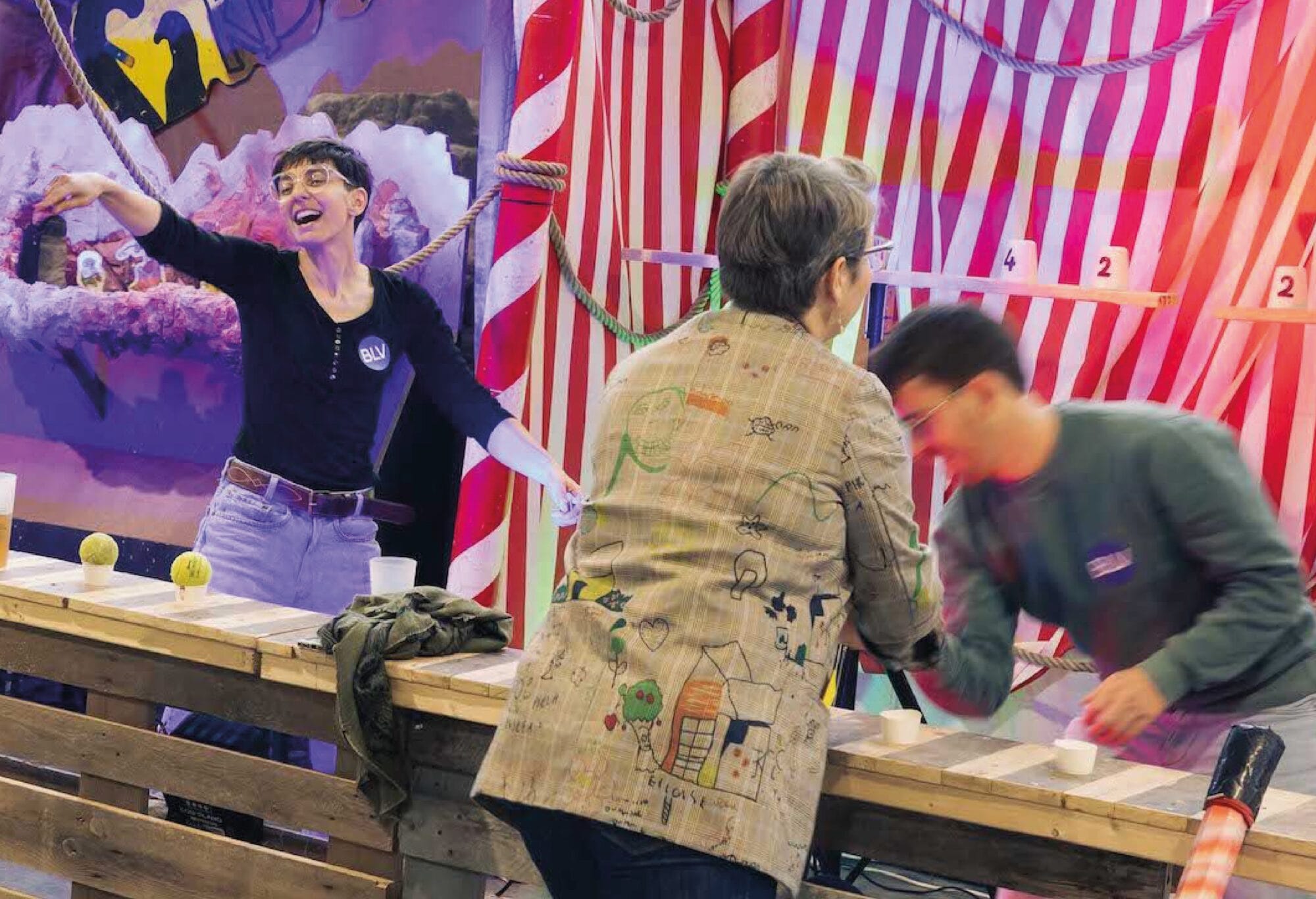 À travers des installations ludiques et un peu loufoques (Kid Paddle, Tiger in a Storm, Mad Lab) nous proposons des jeux faciles à prendre en main, qui donnent envie de s’arrêter, de jouer et de rester. On rit, on observe, on participe, on échange. Le lieu s’anime naturellement.